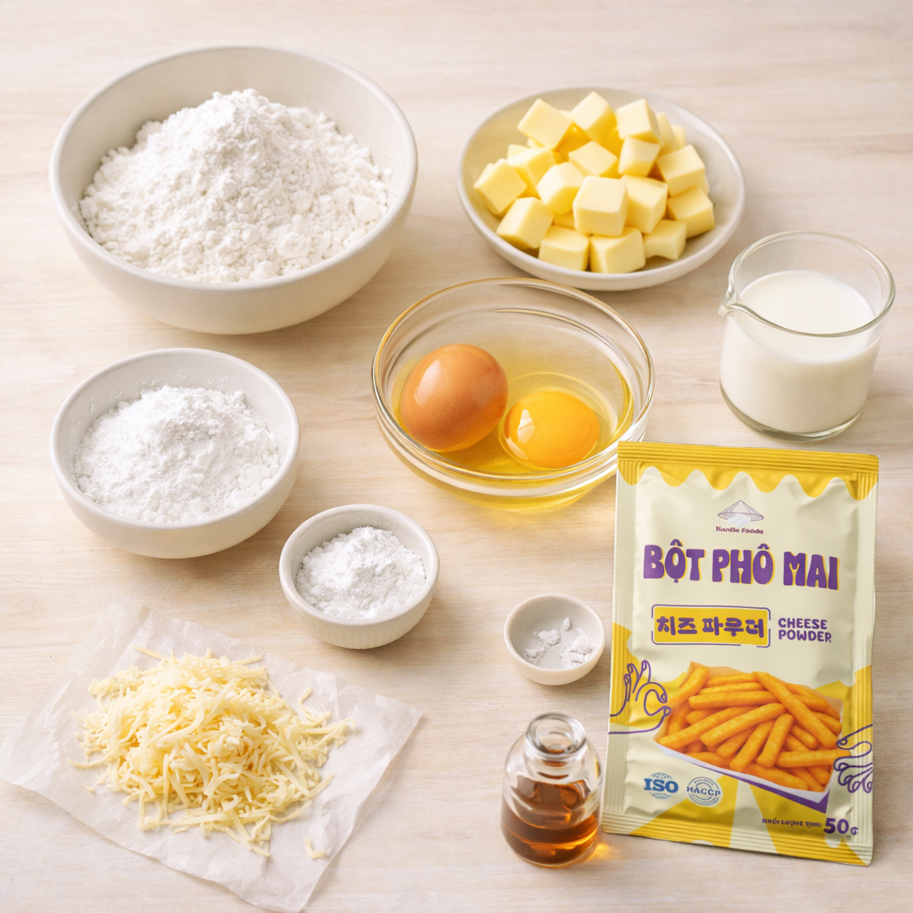 - Bột phô mai Hanbe: 25–30g (tùy độ đậm vị)
