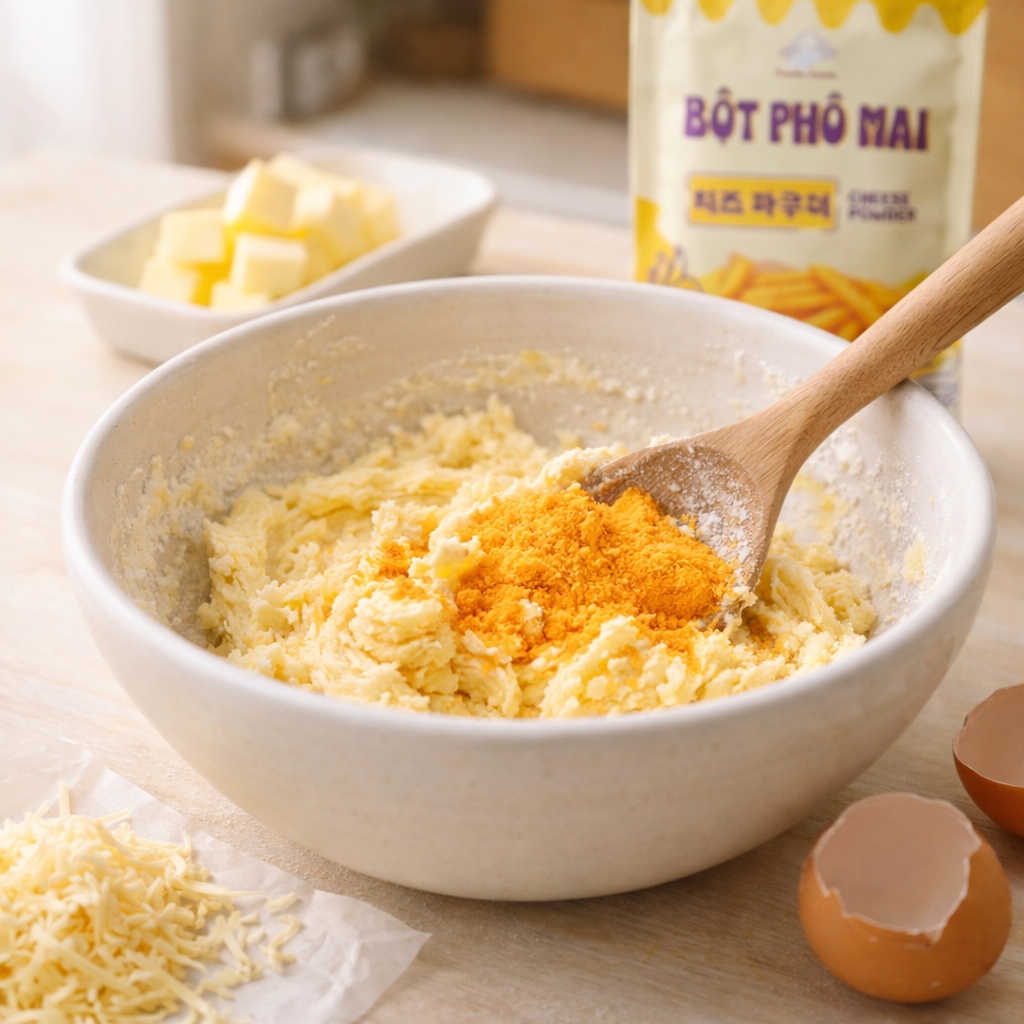 - Dùng bột phô mai Hanbe sẽ thơm béo, không gắt mặn.